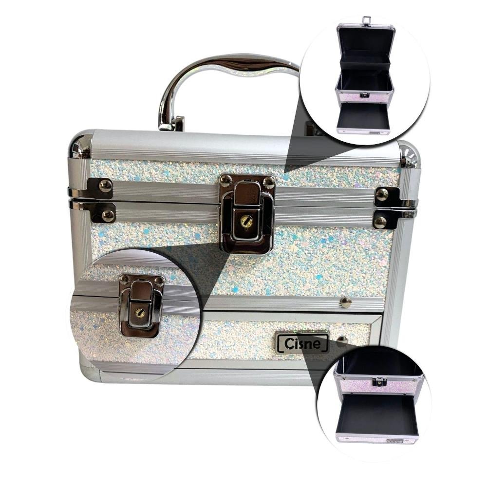 Maleta de Maquiagem Cisne Linha Shine Branco Glitter e Prata Csn-5122B