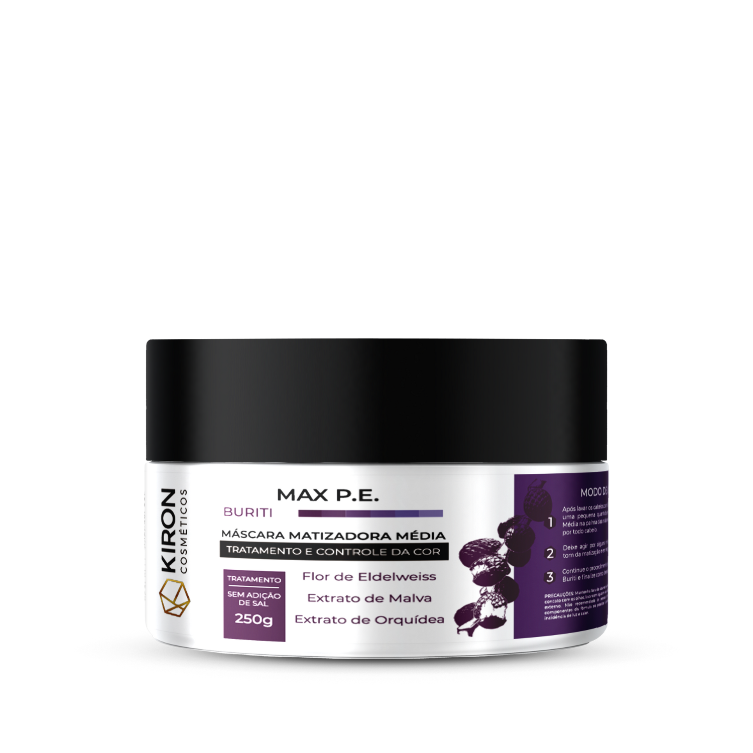 Perfeito pra voce que deseja cabelos loiros, descoloridos ou grisalhos sem tons amarelados, com brilho intenso e saude restaurada.A Mascara de Buriti Media da Kiron Cosmeticos foi desenvolvida para tratar profundamente os cabelos, enquanto remove e matiza os tons amarelados indesejados. Sua formula potente, com extrato de edelweiss, malva e orquidea, revitaliza os fios loiros, descoloridos ou grisalhos, devolvendo saude e brilho. O ativo Violeta 43 neutraliza os tons amarelados, mantendo os cabelos com uma cor vibrante e intensa, proporcionando um visual impecavel e saudavel.Flor de Eldelweiss: Antioxidante poderoso, protege os fios contra danos externos e ajuda na regeneracao capilar.Extrato de malva: Hidrata profundamente e suaviza os cabelos, proporcionando maciez e brilho.Extrato de Orquidea: Rico em nutrientes, ajuda a restaurar a elasticidade e revitalizar os fios danificados.Buriti: Hidrata intensamente, protege contra UV, e combate radicais livres, promovendo brilho, maciez e regeneracao dos fios.1. Apos lavar os cabelos com Shampoo Buriti, 2. Aplique uma pequena quantidade da Mascara de Buriti na palma das3. maos e delicadamente aplique por todo cabelo.4. Deixe agir por 1015 minutos, em seguida enxague.5. Continue o procedimento com o Condicionador de Buriti e finalize como desejar.OBS: A Mascara de Buriti faz parte de um tratamento de uso continuo, seu poder aumenta quando usado em conjunto com a linha completa de Buriti.Conheca a linha completa da Kiron Cosmeticos, voce vai se apaixonar!