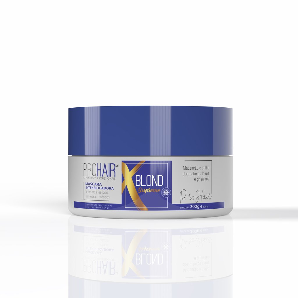 Beneficios A Mascara intensificadora XBlond Supreme da ProHair possui pigmentos neutralizantes de tons amarelados indesejaveis dos fios e trata intensamente a fibra, promovendo uma hidratacao matizadora e neutralizadora da cor.