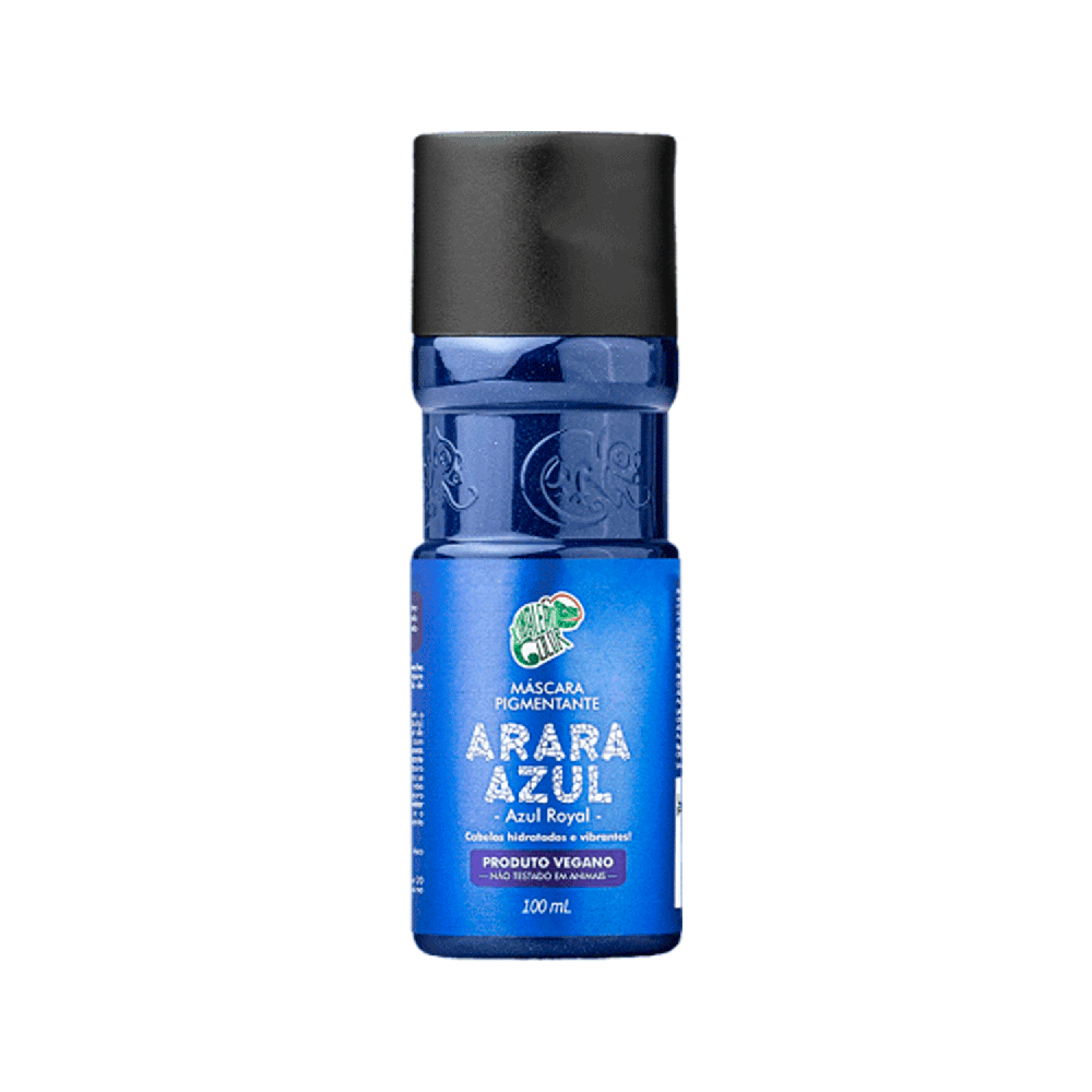 Máscara Pigmentante Kamaleão Color Arara Azul 100ml As Máscaras Pigmentantes, em alguns casos, podem cobrir até 80% dos fios brancos. Lembrando que isso não é a regra, é uma exceção. Por isso é sempre importante realizar um teste de mecha antes para garantir que o resultado alcançado seja aquele que você deseja. Na maioria dos casos onde é aplicado a Máscara Pigmentante sobre fios brancos ela não pigmenta. E caso pegue nos fios, pode sair nas primeiras lavagens. Sobre o produto: Sem amônia; Sem parabenos e peróxidos; Você pode misturar com outras cores para obter novos tons; Diluido com o nosso Creme Multifuncional Arco íris você consegue suavizar a cor e obter tons pastéis; Cor intensa e vibrante; Não contém anilina; Durabilidade de 5 a 25 lavagens (a duração varia de acordo com o cabelo e a manutenção); Extremamente hidratante. Avisos: O cabelo precisa estar descolorido ou tingido; Use luvas durante todo o processo; Se tirado no banho o produto pode manchar a pele; Faça um teste de mecha antes da aplicação do produto no cabelo inteiro. Teste de mecha: Separe e isole uma mecha do cabelo e siga todo o procedimento do modo de uso. MODO DE USO: Com os cabelos limpos (lavados apenas com o Shampoo Arco Íris antirresíduos para melhor absorção do produto) e secos, aplique a Máscara Pigmentante Lobo Guará* e deixe agir de 30 a 40 minutos. Após o tempo de espera, enxágue** somente com água até remover todo o excesso e finalize como quiser. Use luvas durante a aplicação. Para obter o melhor resultado possível, o ideal é que seu cabelo esteja em uma base de 8 (loiro claro) a 10 (loiro claríssimo) matizado e uniforme. *A Máscara Pigmentante Lobo Guará deve ser aplicada pura nos fios. **Recomendamos que o produto não seja retirado no banho pois há risco de manchar a pele. Prova de Toque: Aplique o produto no antebraço, deixe agir por 20 minutos, lave em seguida e aguarde 24 horas. Caso haja irritação na pele, coceira ou ardência não utilize o produto.