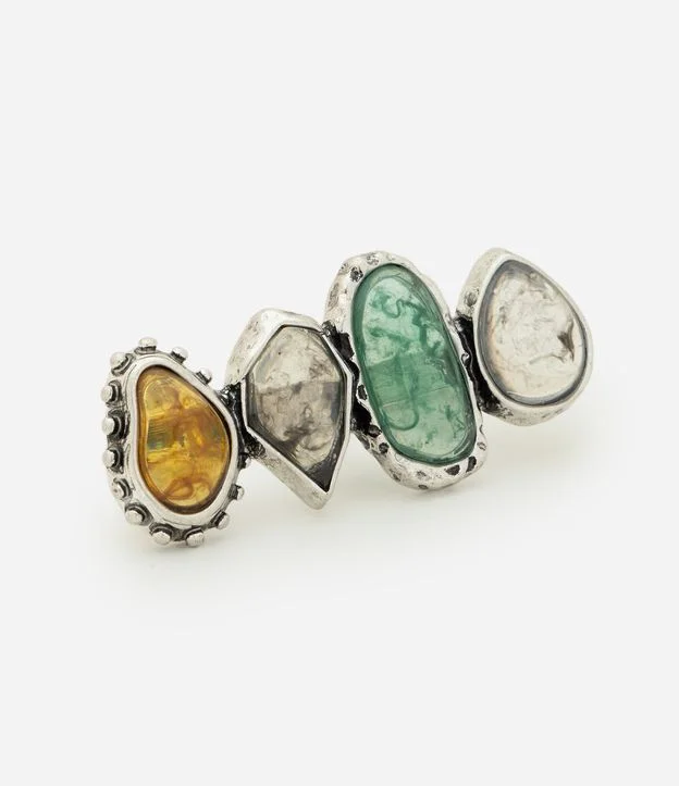 Maxi Anel 02 Dedos com Detalhes Resinados Multicores