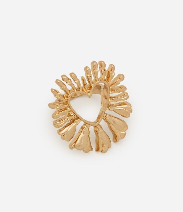 Maxi Anel em Metal com Formato de Coração Vazado Dourado