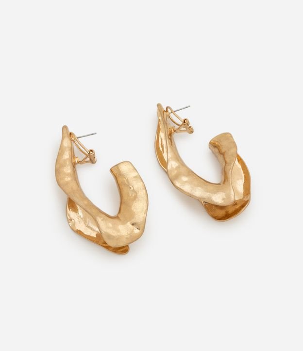 Brinco feminino no modelo argola com efeito martelado com fechamento por encaixe.