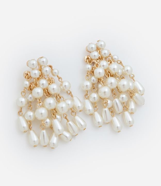 Maxi brinco feminino, com cachos de esferas peroladas.