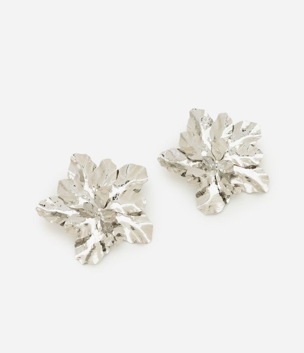 Maxi Brinco em Metal com Formato de Flor Martelada Prata