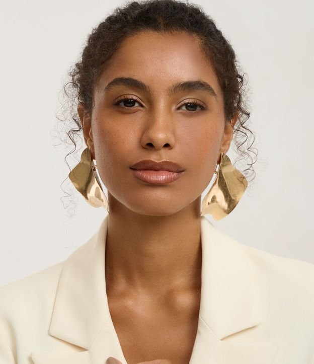 Maxi brinco feminino em metal reciclado mais sustentável. Composto por placas arredondadas de formato orgânico.