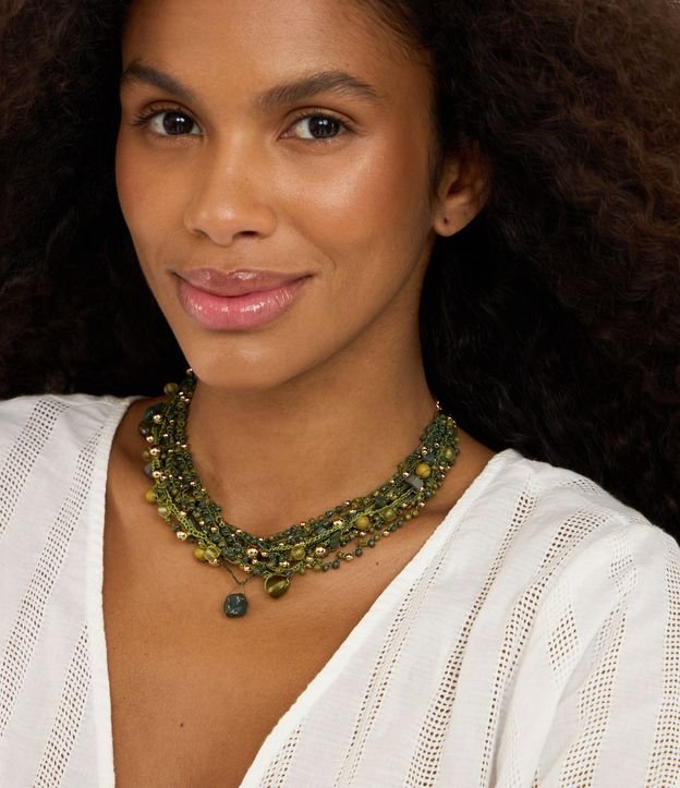 Maxi Colar com Camadas e Miçangas e Eferas Verde
