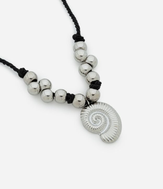 Maxi Colar com Cordão com Nó Esferas e Pingente de Caramujo Prata