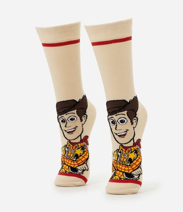 Meia Cano Alto com Estampa Toy Story Bege