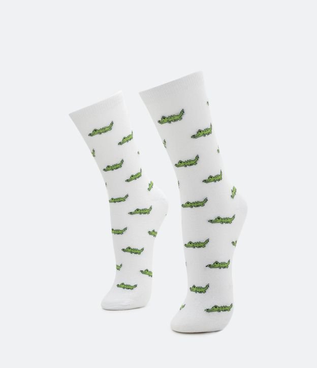 Meia Cano Alto em Algodão com Estampa de Jacaré