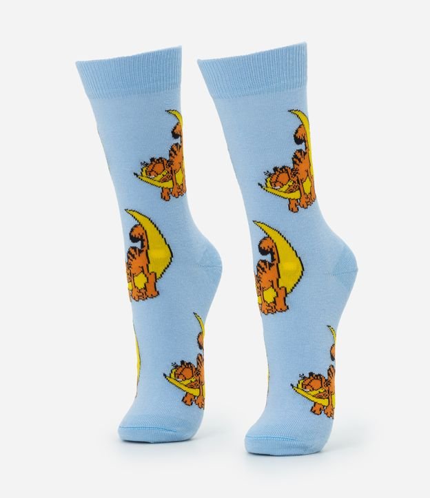 Meia Cano Alto em Algodão com Estampa Garfield na Lua Azul
