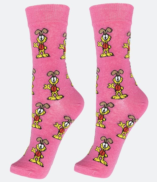 Meia Cano Alto em Algodão com Estampa Odie Garfiled