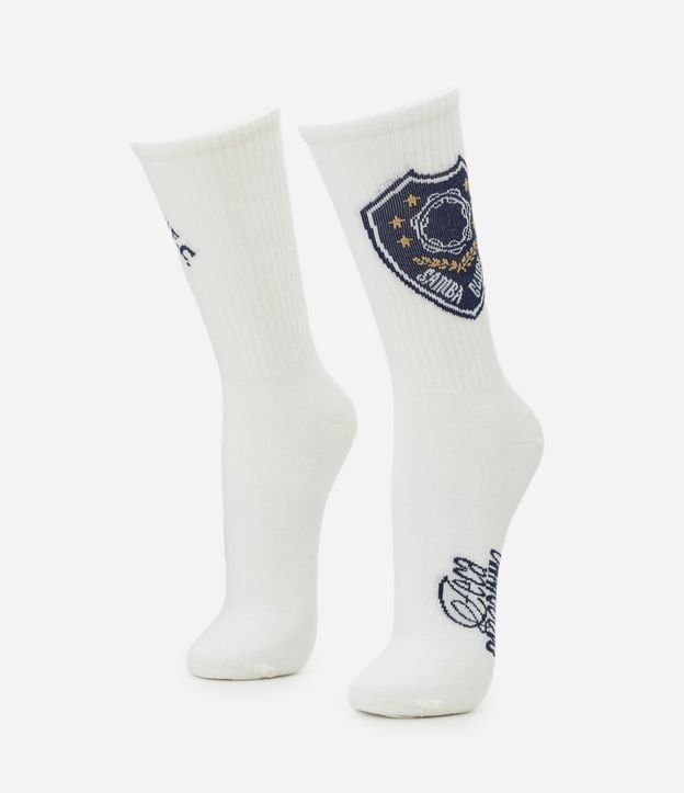 Meia Cano Alto em Algodão com Lettering Zeca Pagodinho e Logo Samba Clube Branco
