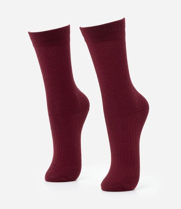 Meia Cano Alto em Viscose Canelada Vermelho