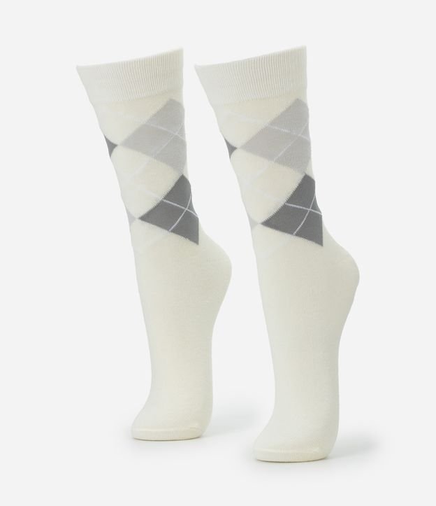Meia Cano Alto Individual em Algodão com Estampa Geométrica Bege