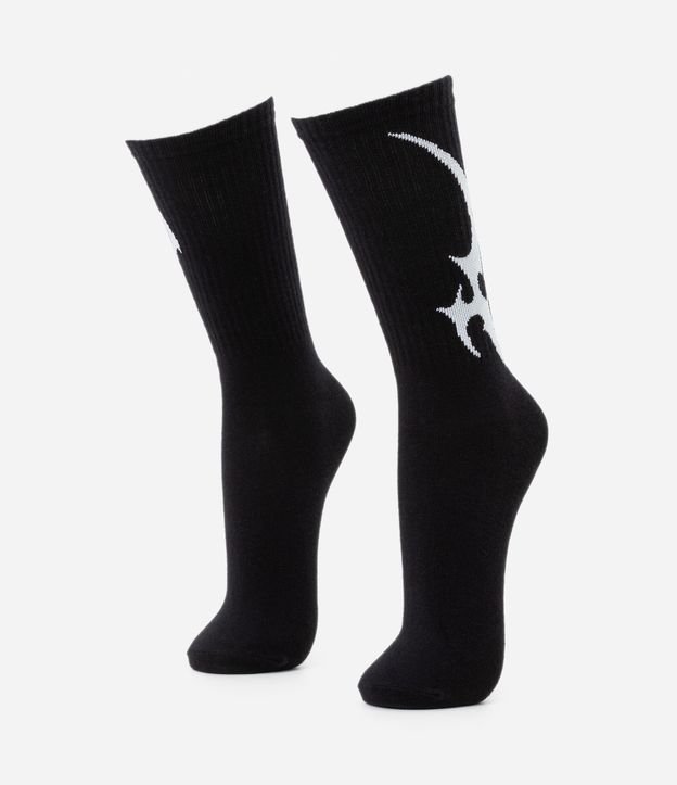 Meia Cano Longo em Algodão com Estampa Abstrata Lateral Preto