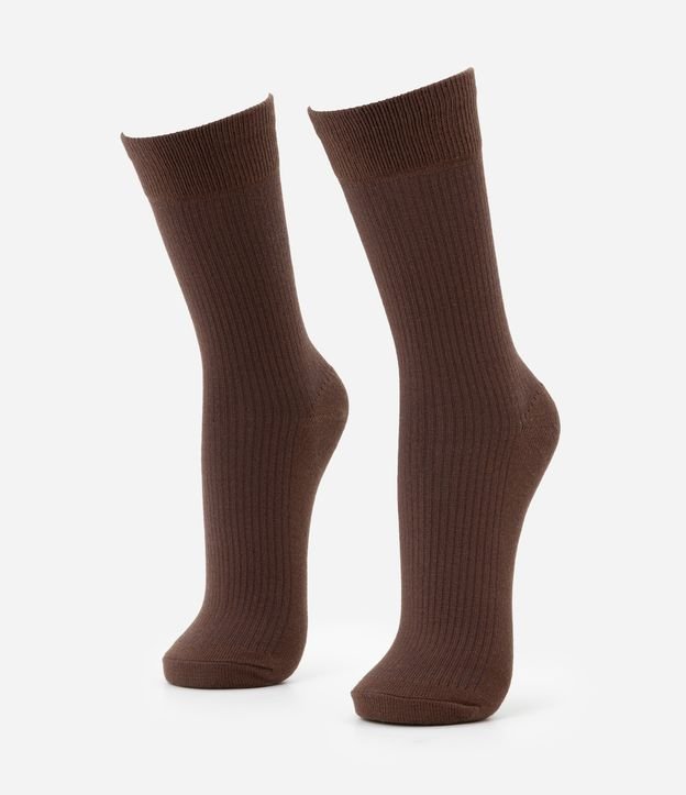 Meia cano médio em viscose, sem costura e com textura canelada.