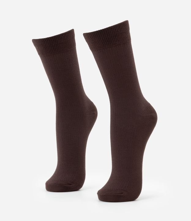 Meia cano médio em viscose, sem costura e com textura canelada.