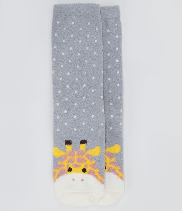 Meia Chenille com Estampa de Girafas