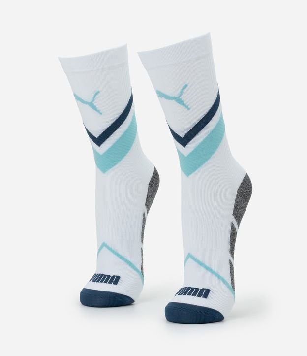 Meia Esportiva com Compressão e Estampa Geométrica Puma Azul