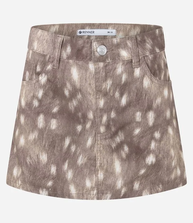 Minissaia em Sarja com Estampa Animal Print Bambi Marrom Clara