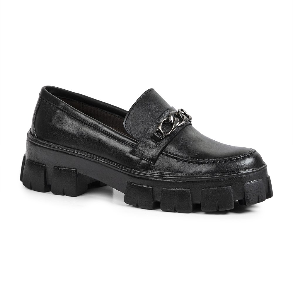 Mocassim Casual em Couro Autem Originals Detalhe Corrente e Sola Alta Tratorada