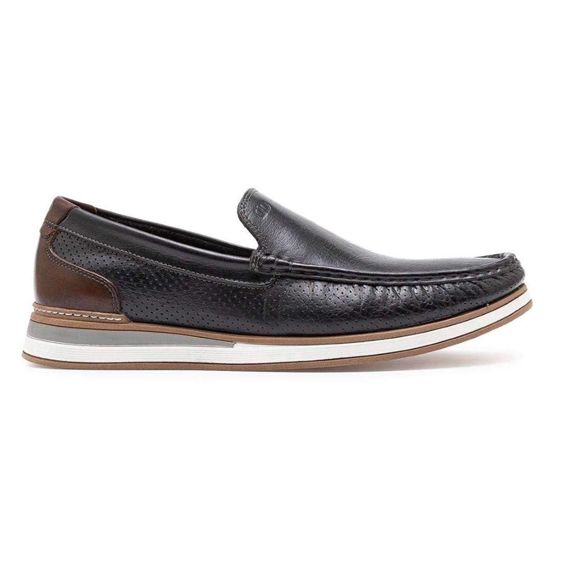 Mocassim De Couro Democrata Denim Flow 252101 Preto/Marrom