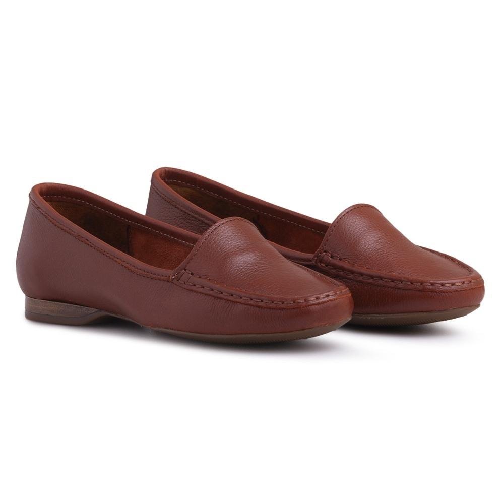 Mocassim Dockside Feminino Couro Liso Conforto Casual Marrom