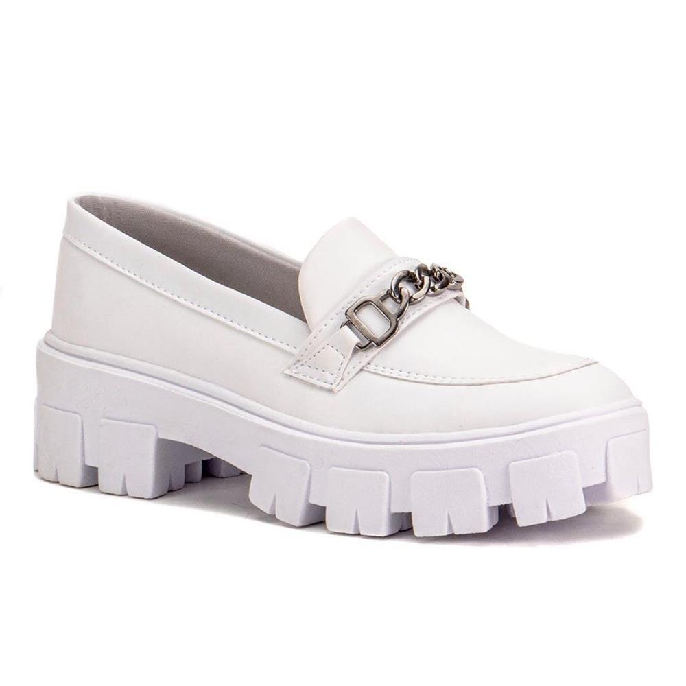 Mocassim Feminino Tratorado Fivela Casual Moderno Branco