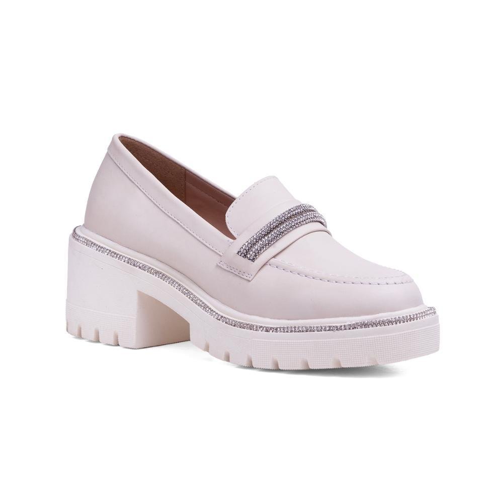 Mocassim Feminino Tratorado Sapato Salto Couro Confortável