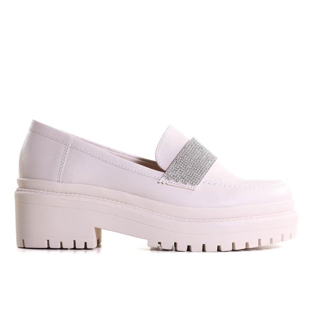Mocassim Feminino Via Marte Com Strass 23-907 Bege Bege