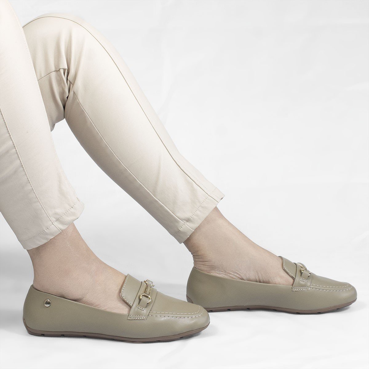 Mocassim Flat Bico Quadrado Rita Taupe