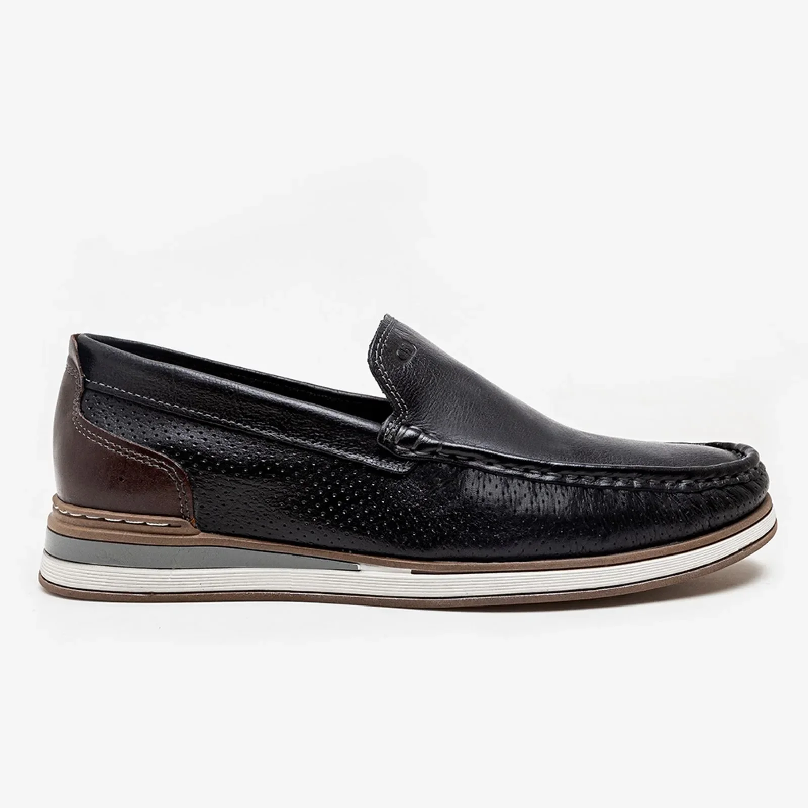 Mocassim Masculino Couro Democrata Denin Flow 252101-001 Preto/Tabaco
