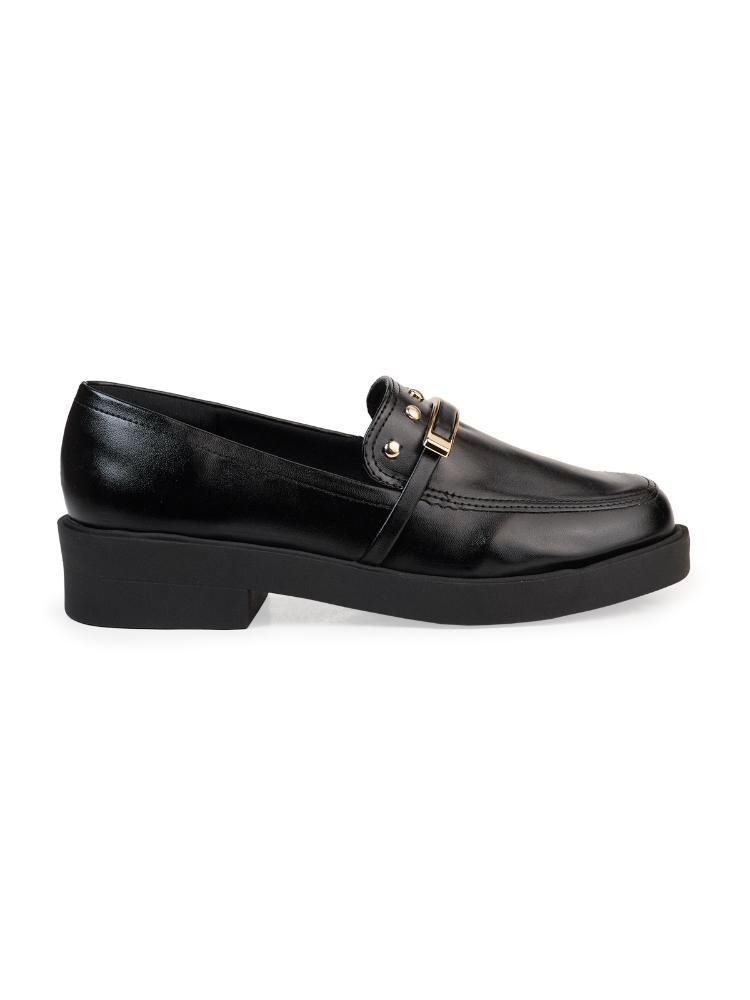 Mocassim Plataforma Bebecê com Fivela e Cravos Preto