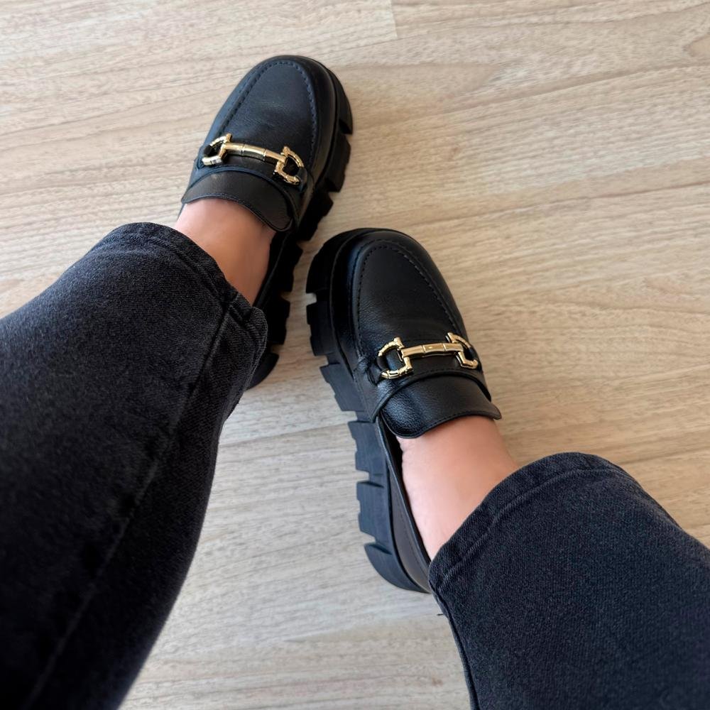 Mocassim Tratorado Couro Legítimo Fivela Laura Preto