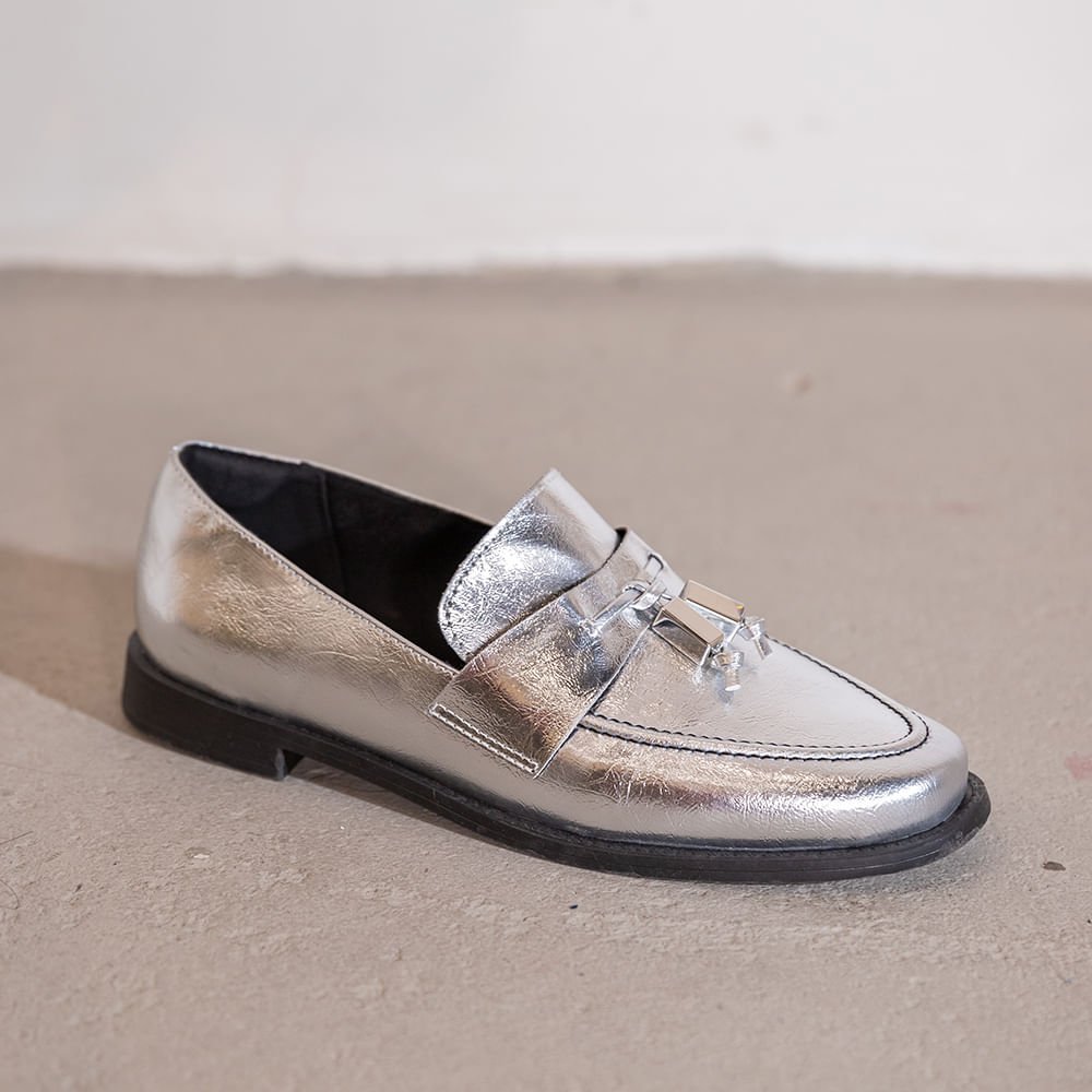 O destaque principal desse mocassim reside nas ponteiras metálicas, que adicionam um toque de atitude e sofisticação ao design clássico; As ponteiras, elaboradas em metal reflexivo, refletem a luz de maneira discreta, criando um efeito visual cativante e dinâmico que chama a atenção; O acabamento em verniz confere ao mocassim uma aparência polida e brilhante, acrescentando um aspecto refinado à peça; A versatilidade desse mocassim permite uma ampla gama de combinações de roupas, desde visuais mais formais até composições casuais e urbanas; Ele pode ser usado para dar um toque de sofisticação a um look de trabalho, adicionando um ponto de destaque a um terno ou conjunto de alfaiataria; Também pode ser incorporado a visuais mais despojados, como jeans e camiseta, para um contraste elegante; O mocassim verniz com ponteiras metálicas em material reflexivo preto é uma tendência que une o charme clássico do verniz com a modernidade das ponteiras metálicas reflexivas; Sua capacidade de elevar visuais formais e informais, juntamente com seu apelo futurista, o torna um calçado distinto e marcante para mulheres que buscam se destacar;