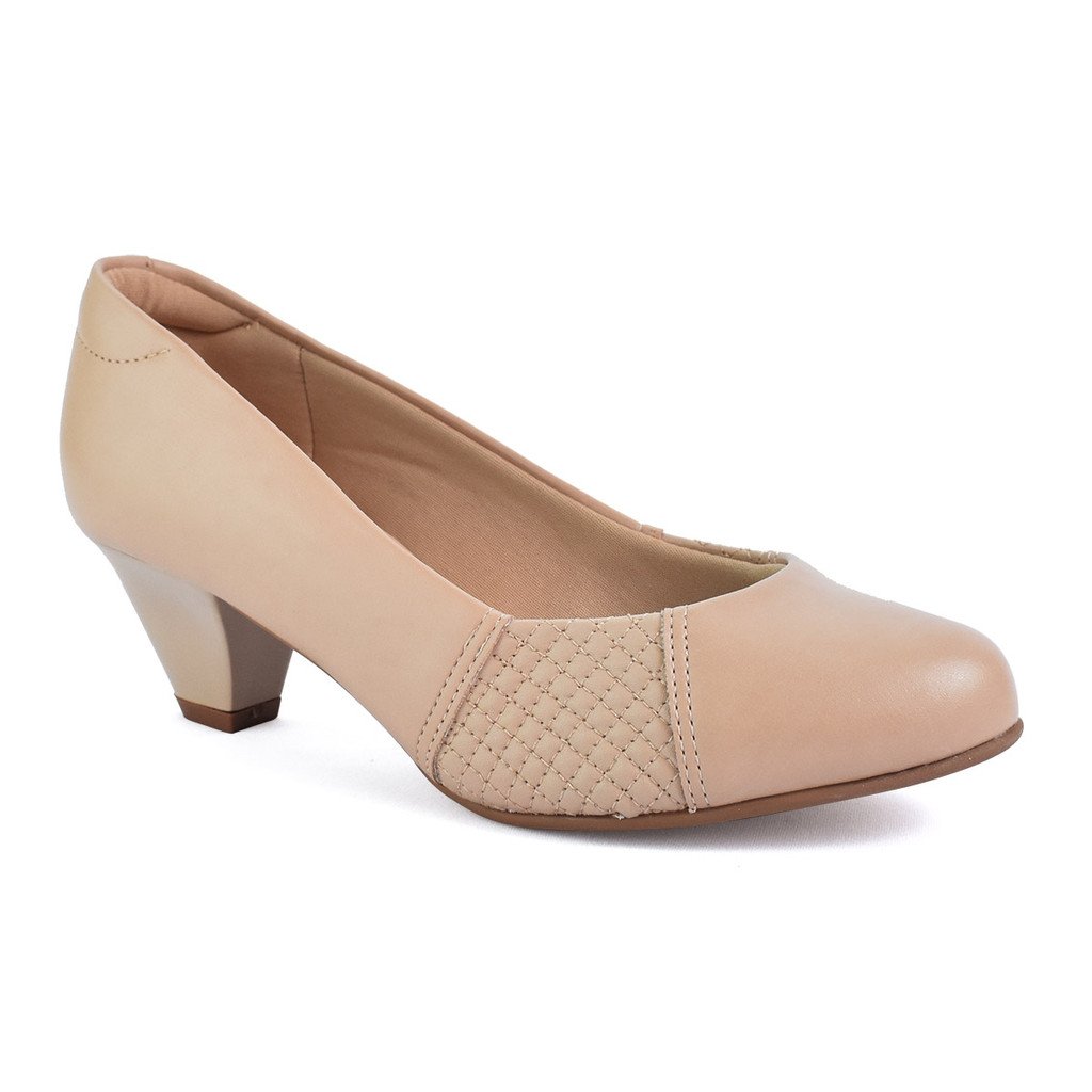 Modare Sapato Feminino Bege Conforto Joanetes Salto Bloco