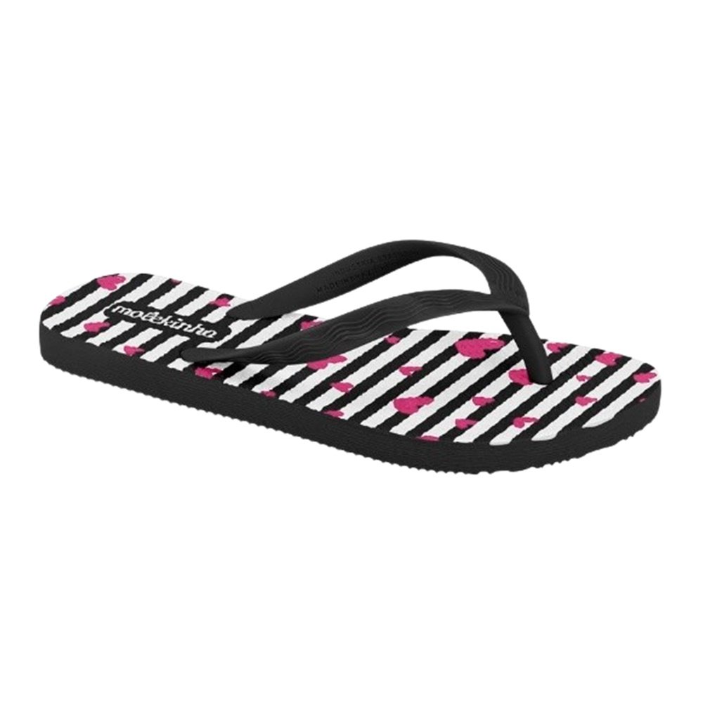 Molekinha Chinelo Tira Fina Estampa Coracao Preto