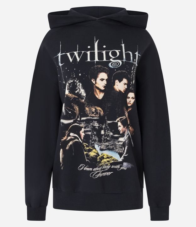 Moletom com Capuz e Estampa Crepúsculo Preto