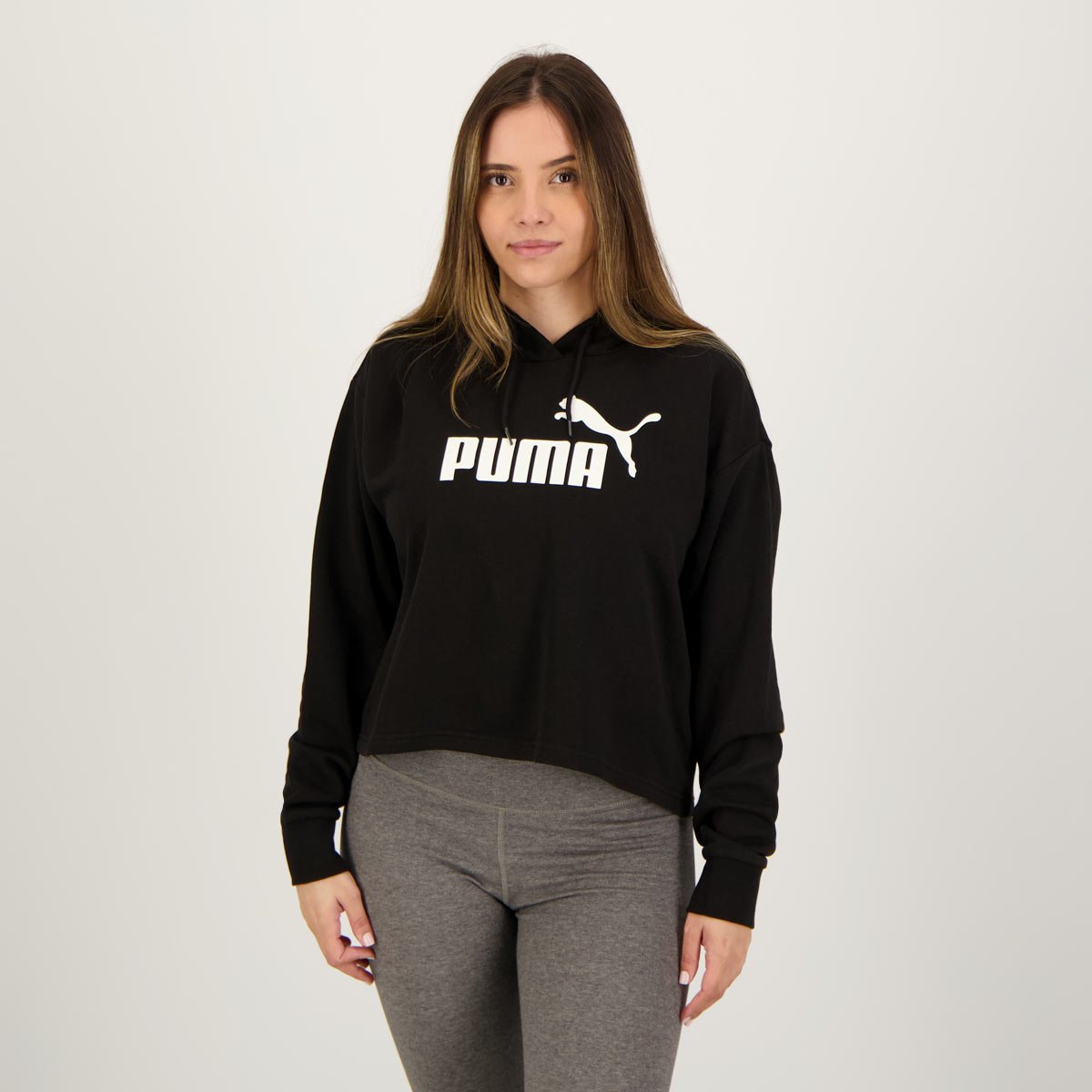 Moletom Cropped Puma Logo ESS TR Feminino Preto