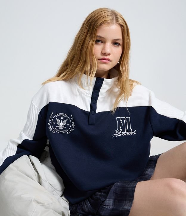 Moletom Polo em Waffle com Bordado Lettering Azul