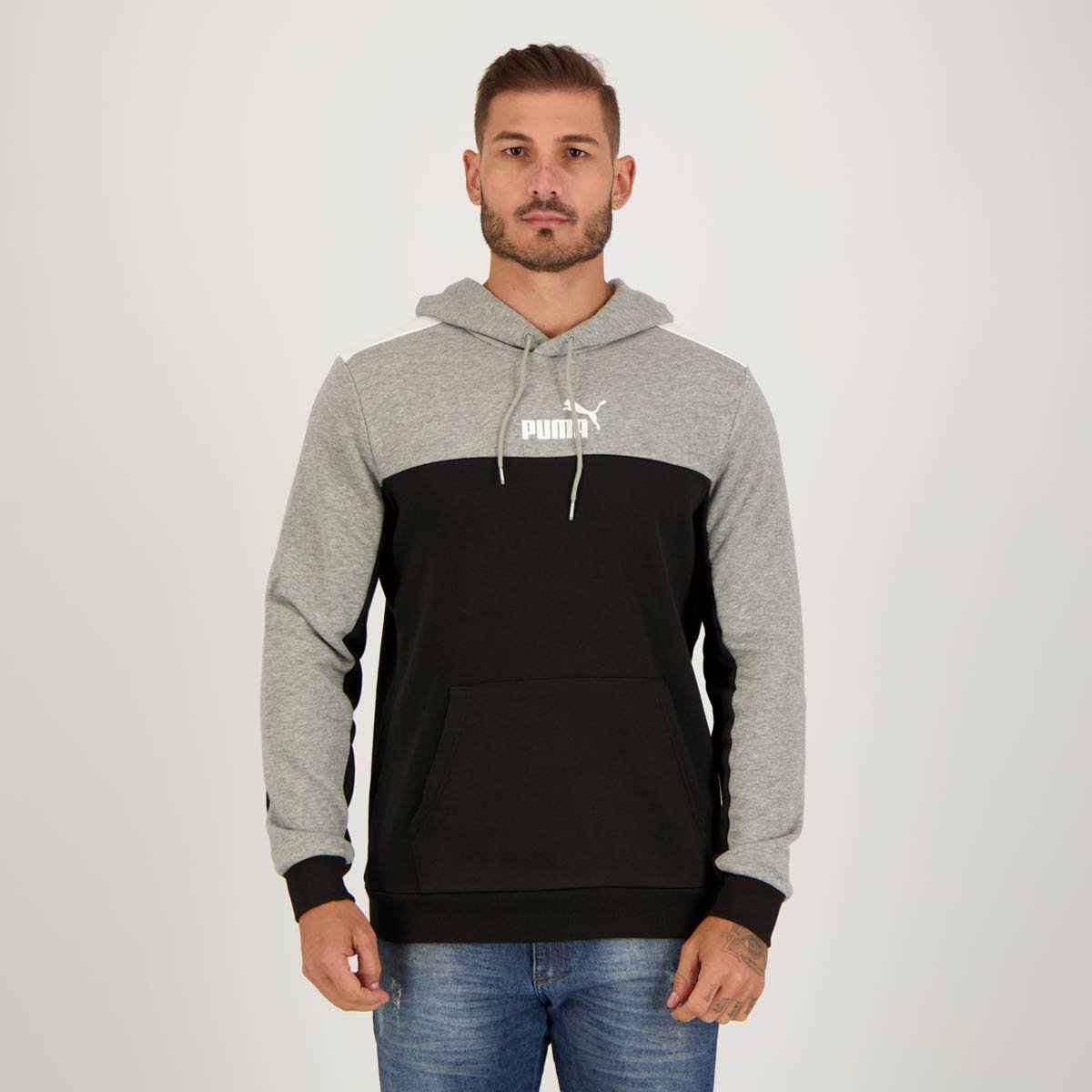 Moletom Puma ESS+ Block Hoodie Preto e Cinza