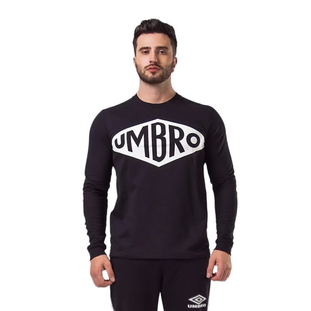 O moletom Umbro Heritage apresenta total conforto e aconchego para seu dia a dia. Sendo fabricado em 88% Algodão e 12% Poliéster, a peça apresenta maior durabilidade, além de apresentar um toque macio. Sua gola redonda traz a presença de tira interna, reduzindo o atrito com as costuras, maximizando assim, a sensação de bem estar durante seu uso. As mangas são longas, garantindo maior proteção térmica, e assim como a barra, apresentam acabamento canelado. O design totalmente em cor preta dispõe do logo da Umbro em branco na região central. Medidas aproximadas (cm): P: 54x68x62 – M: 56x70x64 – G: 58x72x66 – GG: 60x74x68 – 2GG: 63x77x71 (Largura X Comprimento X Manga).
