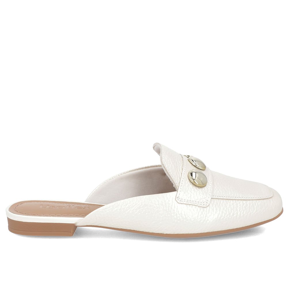 Mule Off-White Perolado Couro Salto Rasteiro Branco