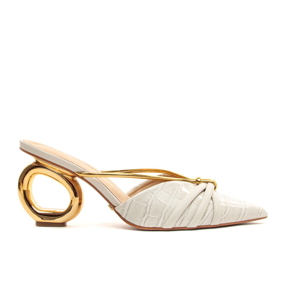 Mule Off White Salto Médio Vazado Cecconello 2271001-1