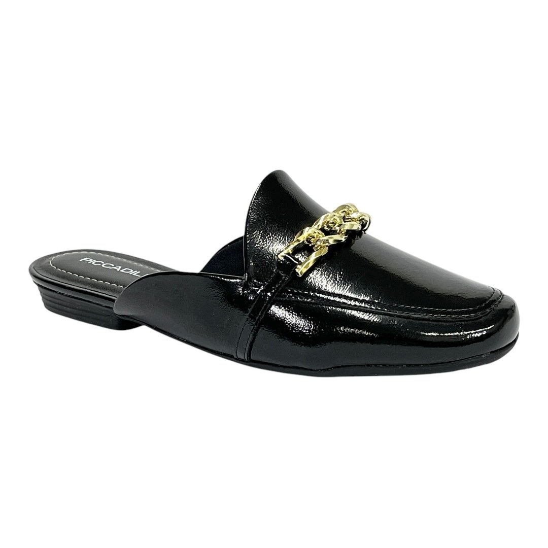 Mule Piccadilly Raquel Salto Baixo 250252 Verniz Preto Preto