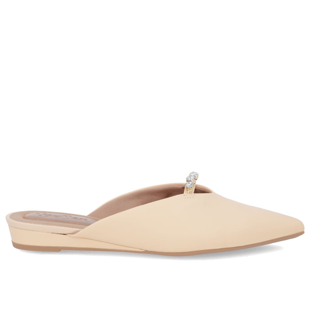 Mule Laranja Bico Fino Couro Salto Anabela Bege