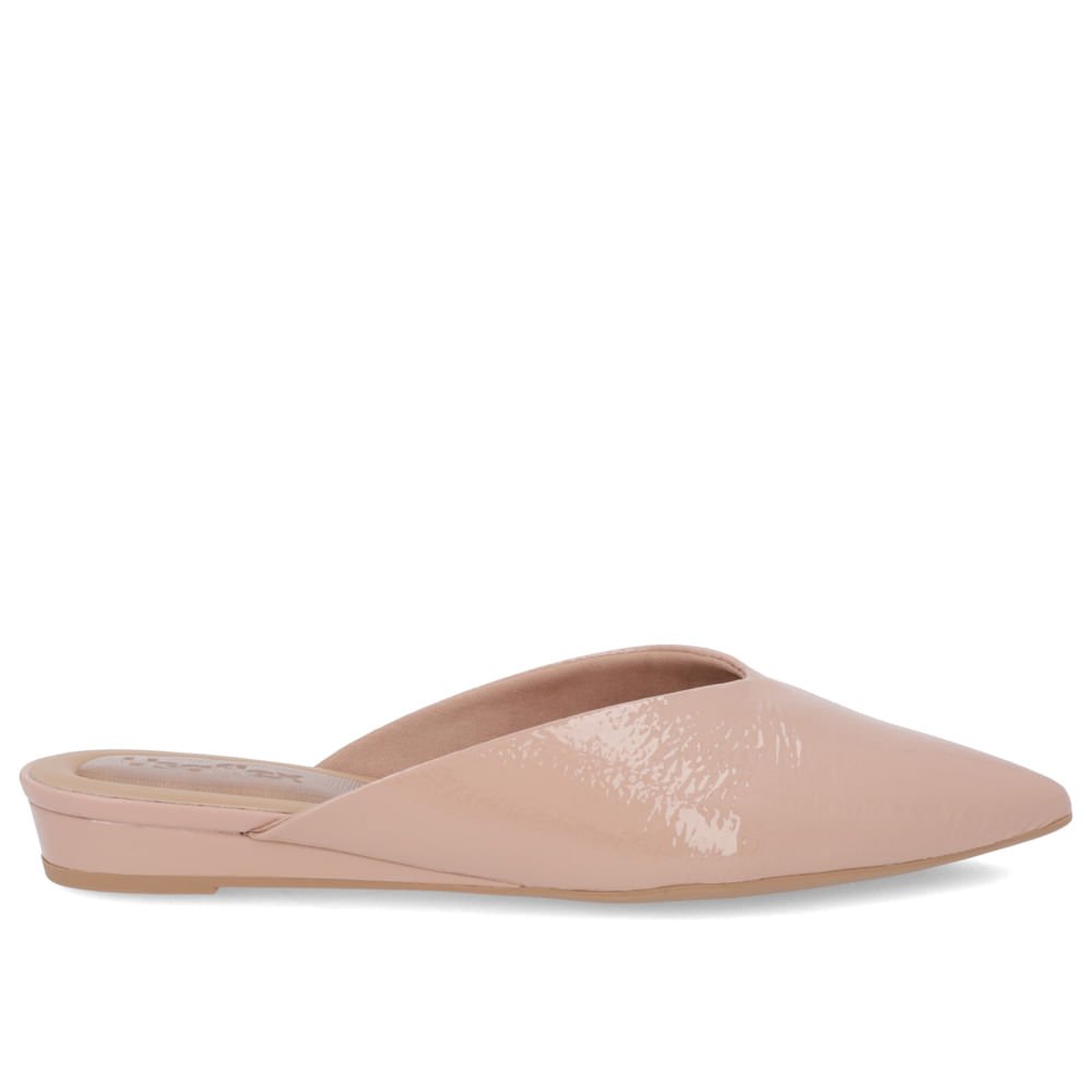 Mule Rosa Bico Fino Couro Verniz Salto Anabela