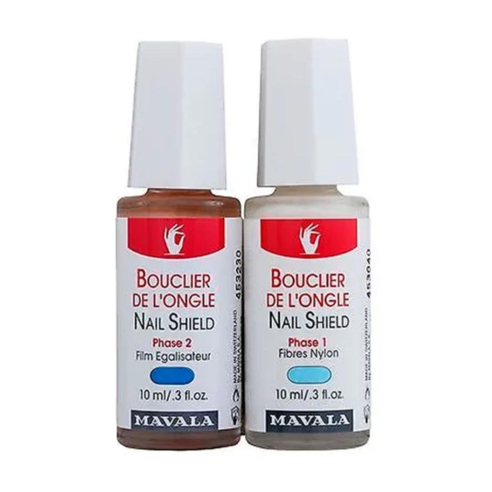 Assim, a unha se torna fraca, frágil, mole e quebra ou descama. NAIL SHIELD (em 2 fases) forma uma camada física fortificante que protege a unha de qualquer agressão e choque, enquanto cresce saudavelmente com a combinação de tratamentos como MAVALA SCIENTIFIQUE e/ou NAILACTAN. Quando é removido, as unhas já não estão mais protegidas.