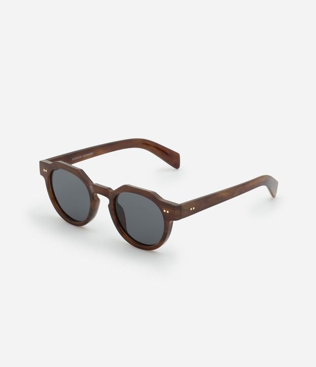 Óculos Arredondado com Estampa Marmorizada Marrom